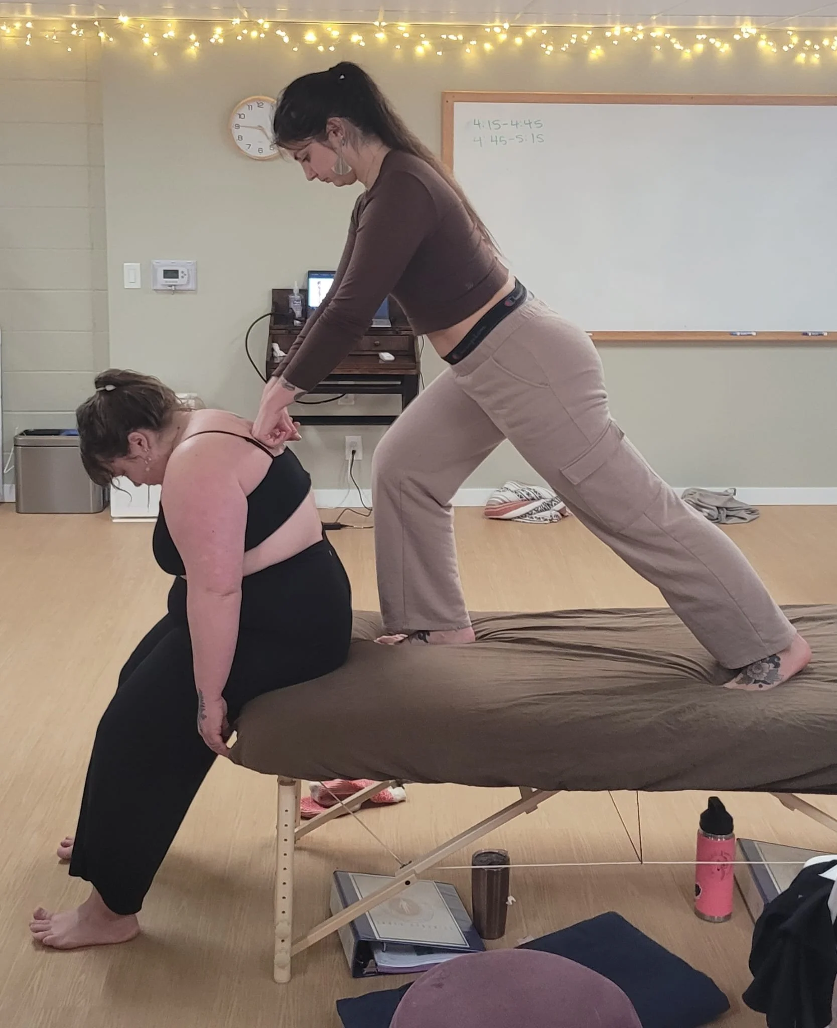 My work is mostly influenced by Structural Integration, which is intended to reorganize and integrate the body in its relationship to gravity, by manipulating soft tissues and/or correcting patterns of movement. Traditionally performed with minimal lubricant, and the client clothed in a tube top / sports bra & shorts to integrate movement and somatic exercises.